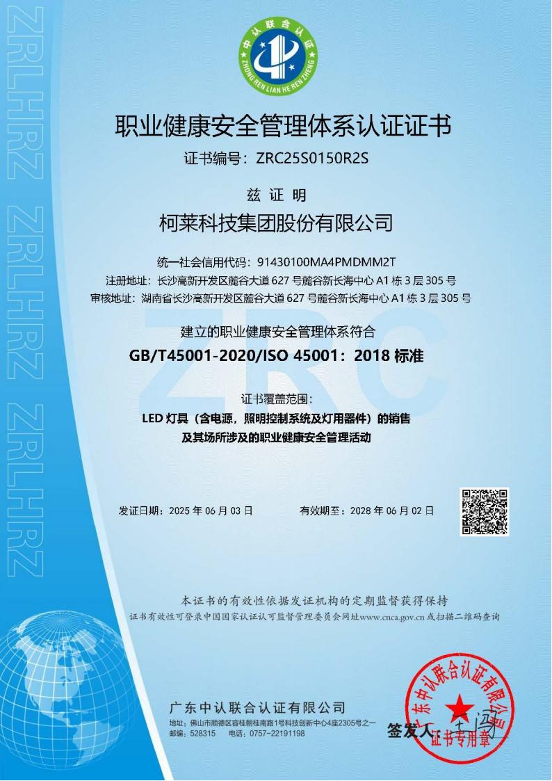 长沙职业健康安全管理体系认证证书