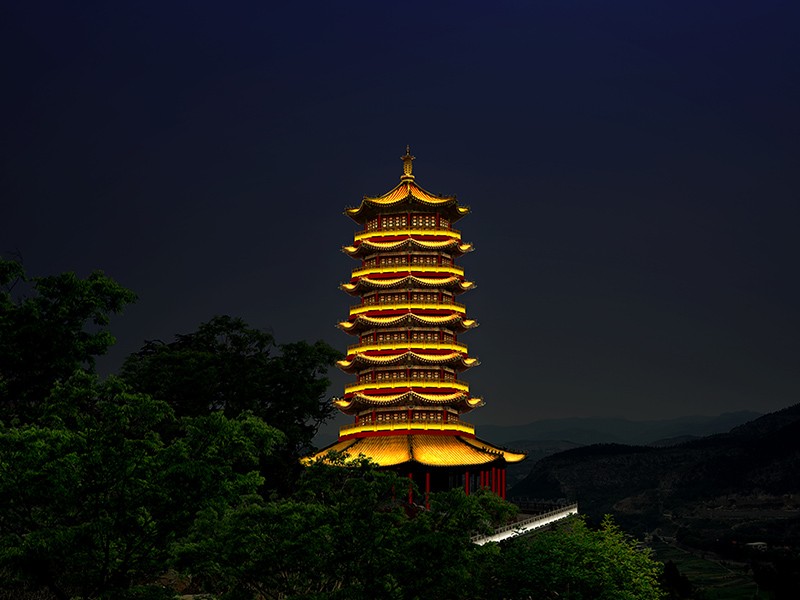 湖北仿古八角塔夜景照明设计